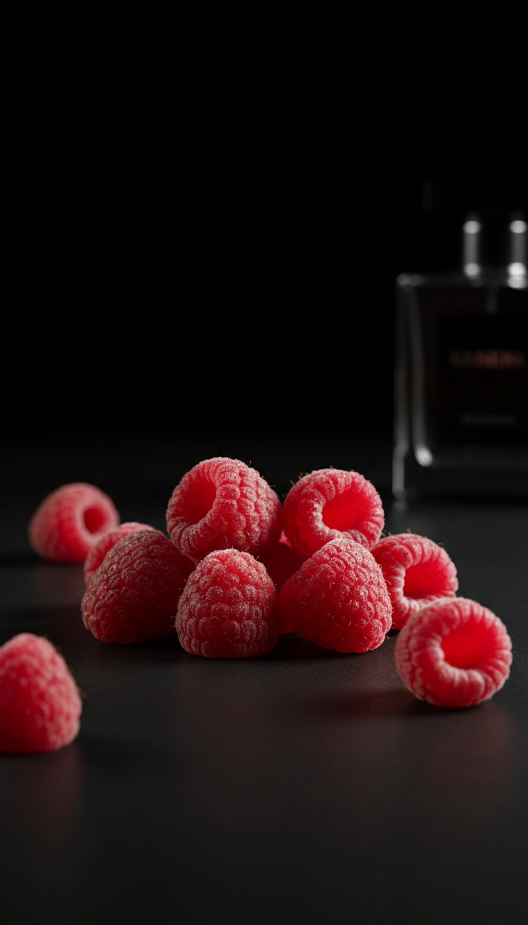 Frambuesa fresca, grosella ácida, frutos rojos chispeantes.