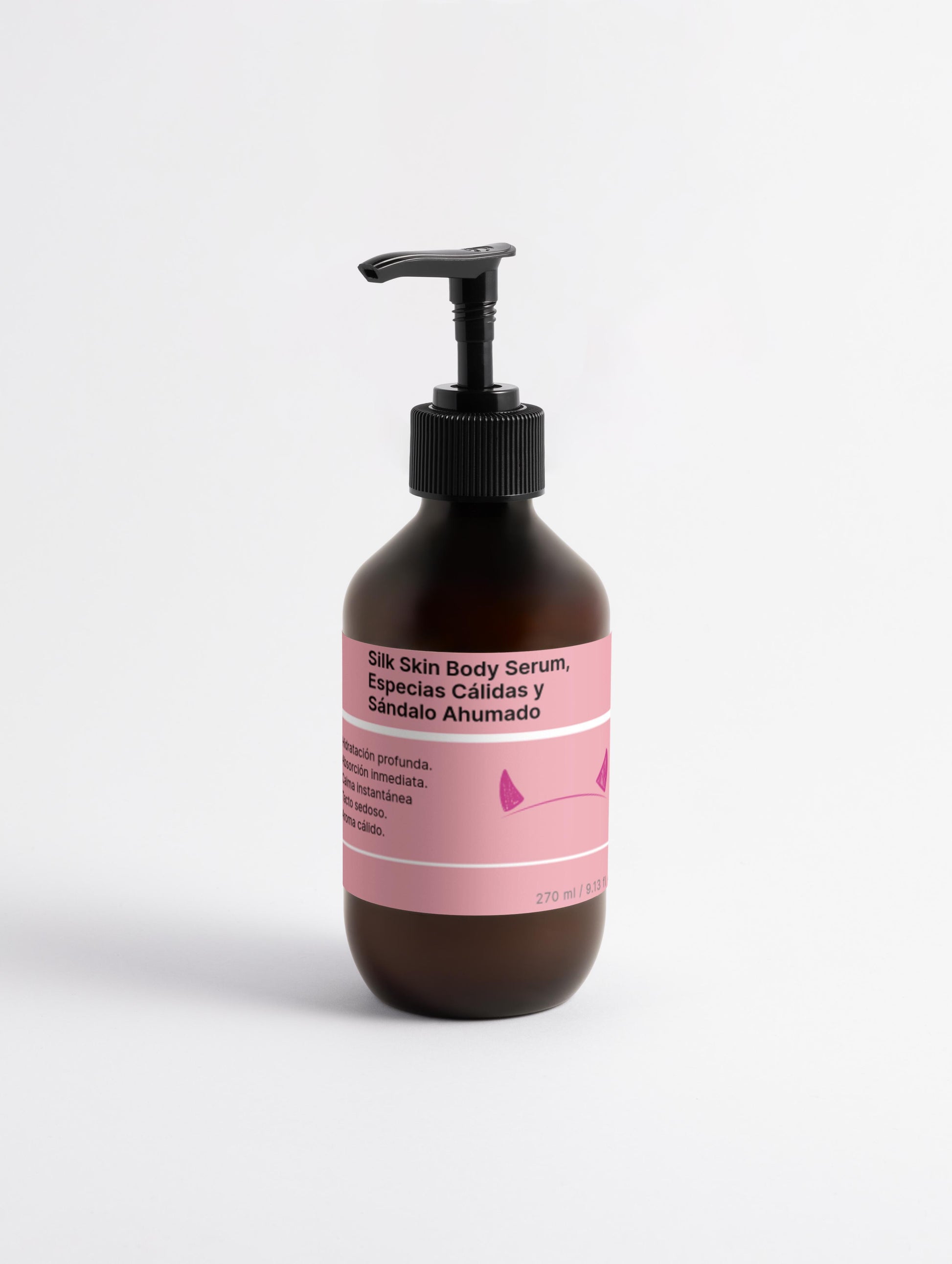 Este sérum corporal ultraligero está formulado con una mezcla de aceite de jojoba (emoliente biomimético que regula el sebo) y aceite de rosa mosqueta, rico en ácidos linoleico y retinoico, que mejoran visiblemente la textura de la piel y su elasticidad. La infusión de sándalo y especias crea una experiencia sensorial envolvente.